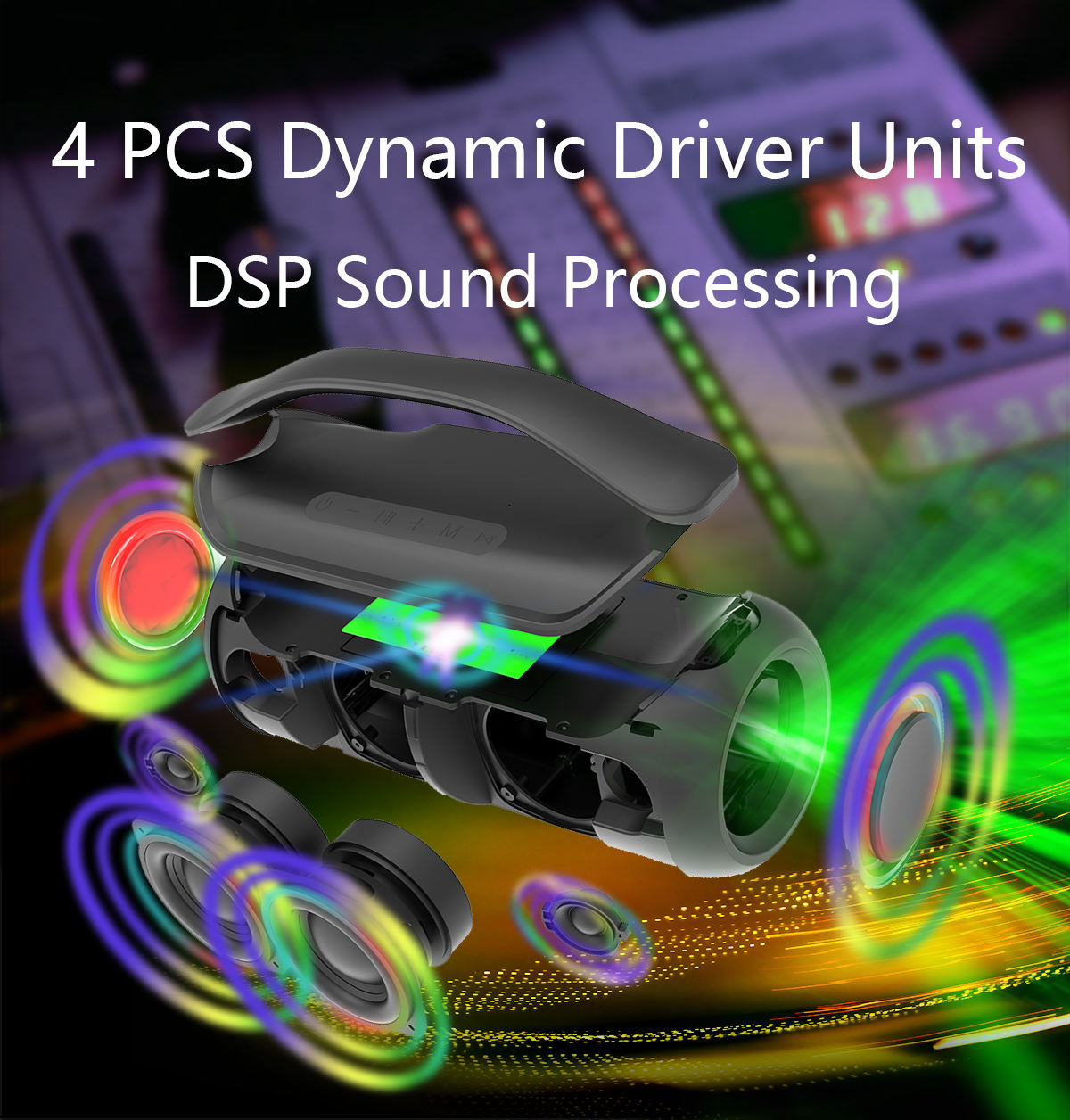TF card, U disk, BT, AUX, NFC, TWS interconnection, EQ sound mode (full frequency, vocal, subwoofer)